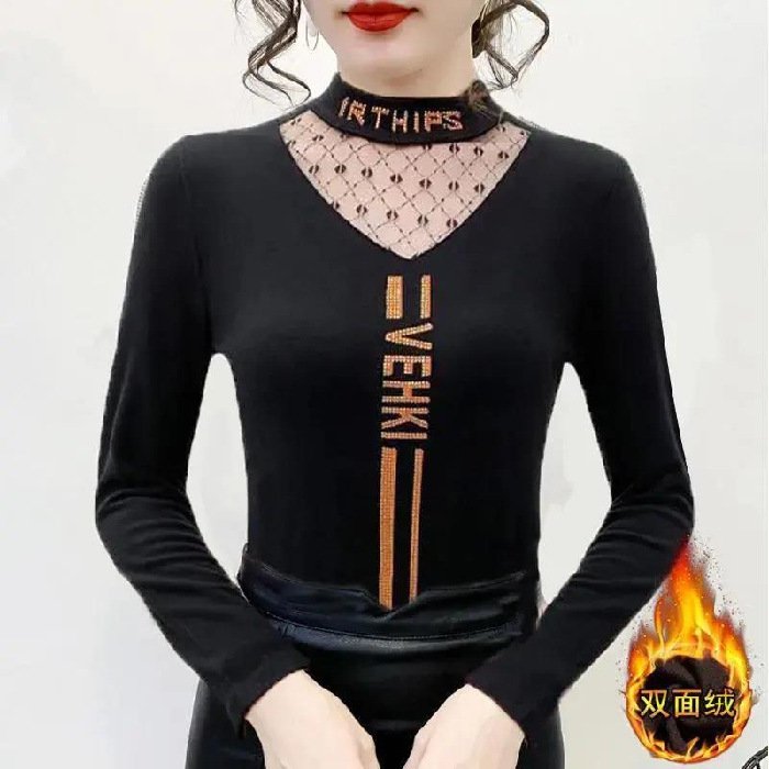เสื้อยืดผ้ากำมะหยี่ทั้งสองด้าน แบบคอเต่า เย็บต่อ