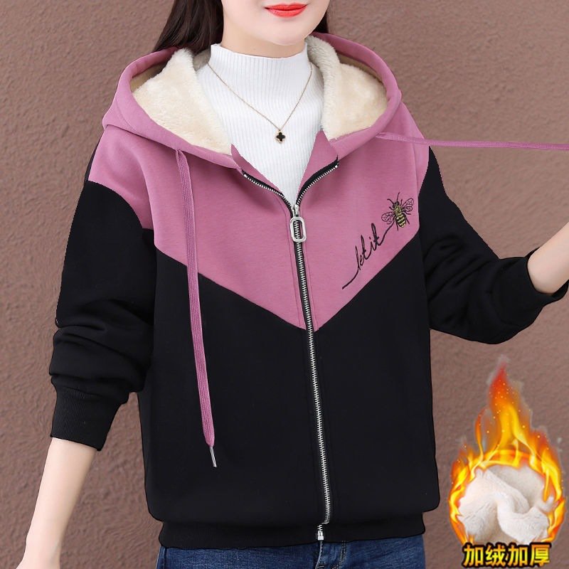 เสื้อฮู้ดบุขนผู้หญิ เสื้อคาร์ดิแกนพร้อมซิป เพิ่มความหนา สำหรับหน้าหนาว รุ่นใหม่ปี 2021 เสื้อโค้ทกันห