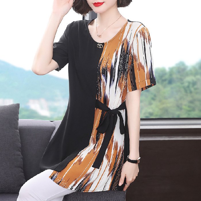 เเสื้อแขนสั้นผู้หญิง ตัดสีสวย ทรงยาวปานกลาง ใส่แล้วดูผอม